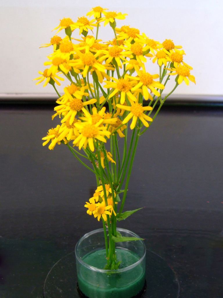 Groundsels or ragworts are somewhat course plants but add a touch of sunshine to the spring garden and make effective groundcovers. Flat-topped clusters of bright yellow flowers rise above rosettes of attractive egg-shaped foliage. This groundsel, formerly named Senecio obovatus, is an inhabitant of moist to dry, usually calcareous woodlands. It’s native to most of eastern New York, including Ulster County. The flowers are attractive to a number of native bees which feed on both pollen and nectar. The foliage is toxic and is generally shunned by deer and rabbits. It’s a host plant for a very rare butterfly, the Northern Metalmark (Calephelis borealis). In New York, this butterfly has only been reported at a number of sites next door in Orange Co., never here in Ulster Co., but perhaps if you plant it, the butterfly will come. Groundsels can look a little bedraggled as they go to seed and can benefit from a shearing back to basal foliage.