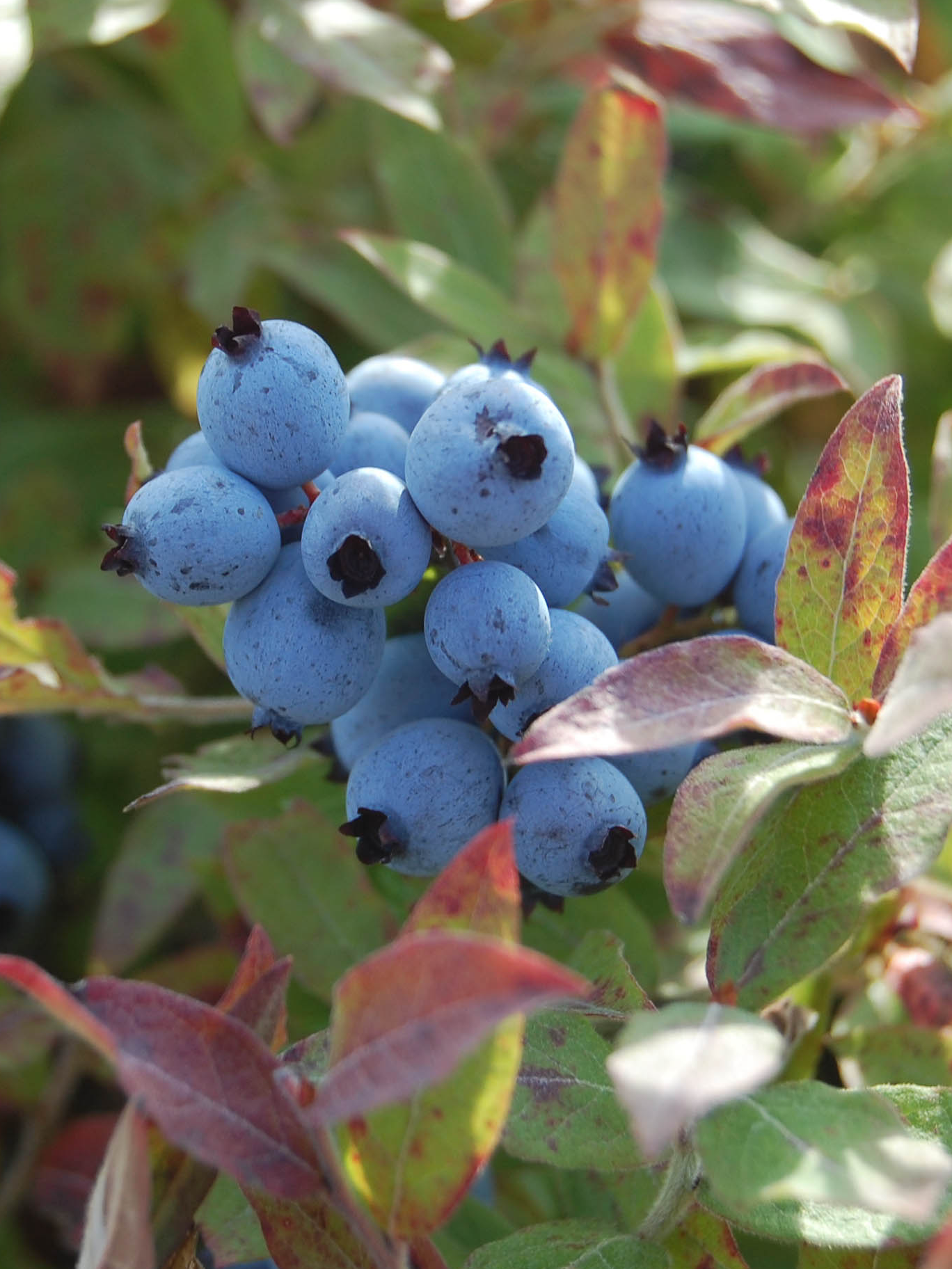 ‘Ruby Carpet’ – selected in Michigan from seeds of a wild low-bush blueberry from Maine. Grows no higher than about 6” and readily spreads. Good crops of tasty blue-black berries, and excellent ruby fall foliage color.