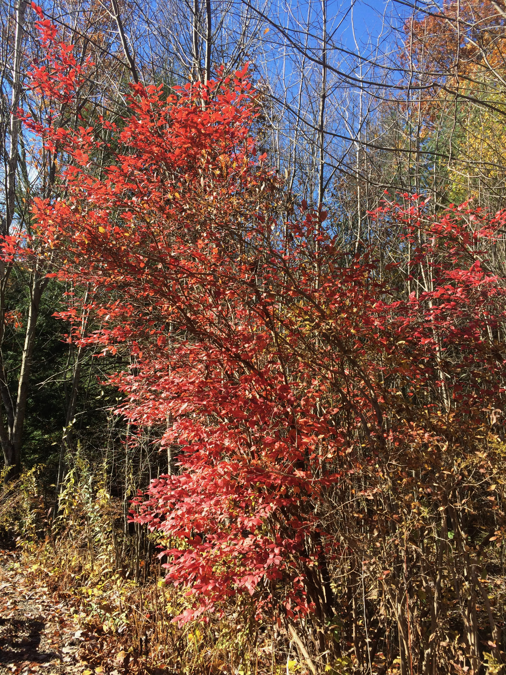 For the native plant purist, we offer pure Highbush Blueberry. These will have smaller berries (better for pancakes!) and be a little less productive than our cultivars. Highbush Blueberry is underused in our landscapes – they offer 4 season interest: upside-down urn-shaped flowers in Spring; berries in Summer; Fall foliage that ranges from burgundy to brilliant crimson and orange; and craggy, contorted stems in Winter. Needs an acidic soil, plenty of moisture and little competition from weeds to thrive. Once in a while, fertilize with Hollytone.